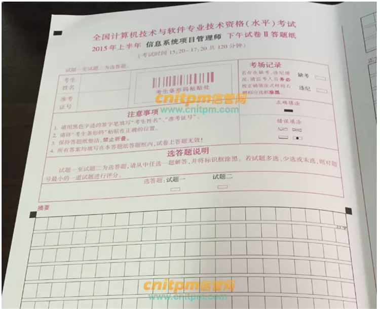 在考试前已经有很多人问过这个问题了:“老师,信息系统项目管理师论文到底要不要写摘要?”“有明文规定不能写摘要吗?”。这个确实没有,但是在近几年的考试题目中也没有出现过要求写摘要的语句。所以同学们可以根据自己的习惯来。写不写摘要,对论文扣分的影响不大。影响论文最后得分的一定是您本身的论文水平。