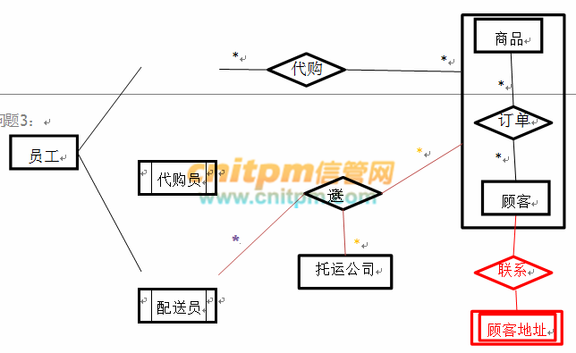 新增一个弱实体顾客地址,新增一个联系客户收货地址,,联连接顾客实体和顾客地址类型为1:*;弱实体用双矩型运送关系模式增加该订单收货地址