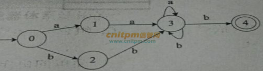 某确定的有限自动机(DFA)的状态转换图如下图所示(0是初态,4是终态),则该DFA能识别( )。