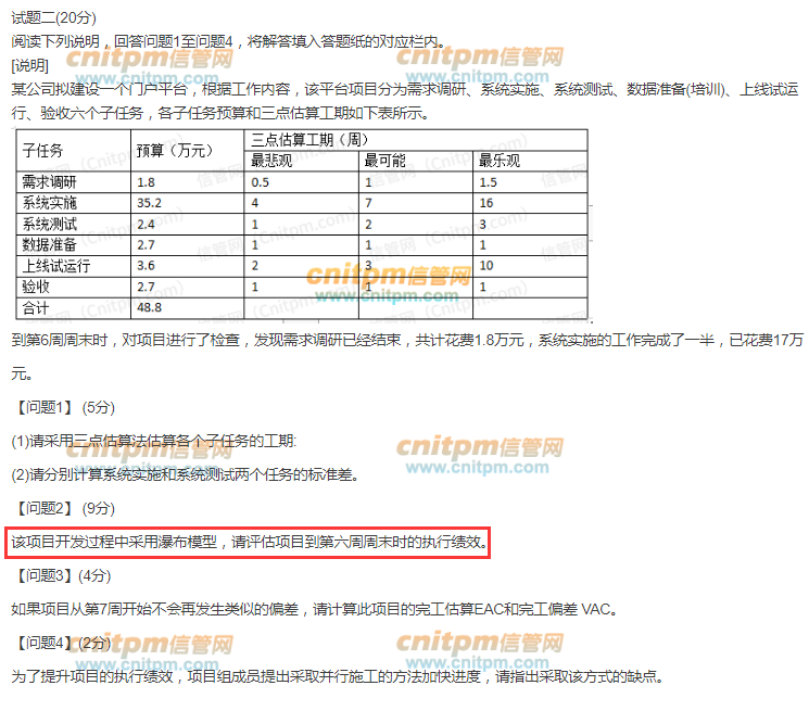 2021年下半年系统集成项目管理工程师案例分析计算题讨论: