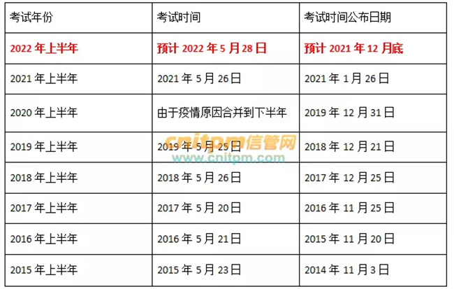 2022年上半年信息系统项目管理师考试时间其实很好预测,因为每年都在5月份的某个周末,所以可以大胆预测下2022年上半年信息系统项目管理师考试时间为5月28日。