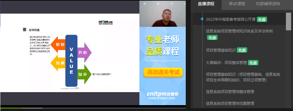 JRS直播软考免费视频课程上线了!目前JRS直播针对信息系统项目管理师、系统规划与管理师、系统集成项目管理工程师、信息安全工程师、软件设计师、网络工程师均开设有免费课程,提供给广大考生免费试听。