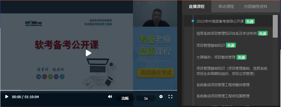 JRS直播2022年软考免费视频课程已经上线!目前已针对信息系统项目管理师、系统规划与管理师、系统集成项目管理工程师、信息安全工程师、软件设计师、网络工程师开设有免费试听课程,课程内容包括考试介绍、考点分析、章节内容讲解、备考规划等多方面,帮助考生熟悉与了解考试内容,制定备考计划,点击下方链接进行查看: