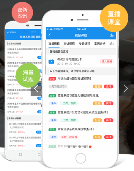 JRS直播2022年软考培训课程已全面上线,目前JRS直播针对信息系统项目管理师、系统规划与管理师、系统集成项目管理工程师、信息安全工程师、软件设计师、网络工程师等考试项目均开展了直播(录播)培训业务,针对不同学员的需求,开设有高端班、精品班、无忧班等多种服务项目,为零基础、备考时间不足、急于取证的考生提供帮助。