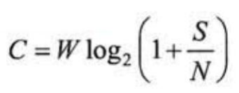 其中,C为数据速率,W为信道带宽,S为信号的平均功率,N为噪声平均功率,S/N为信噪比。