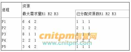 假设系统中有三类互斥资源 R1、R2 和 R3,可用资源数分别为 8、7 和 4。在 T0 时刻系统中有 P1、P2、P3、P4 和 P5 五个进程,这些进程对资源的最大需求量和已分配资源数如下表所示。在 T0时刻系统剩余的可用资源数分别为 (1) 。如果进程按 (2) 序 列执行,那么系统状态是安全的。