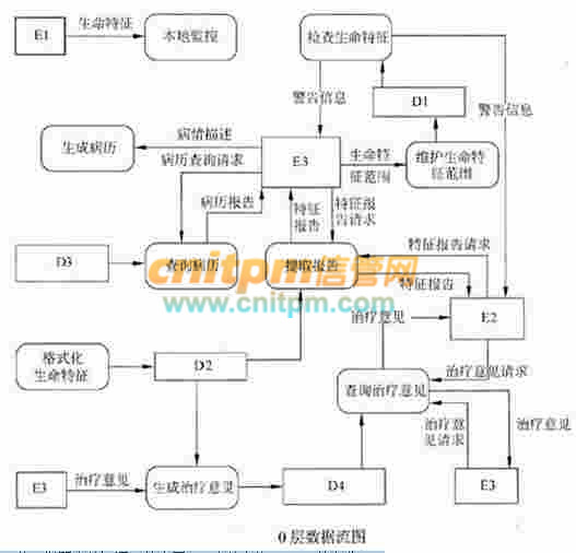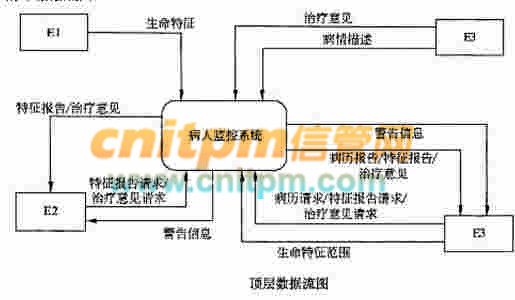 现采用结构化方法对病人监控系统进行分析与设计,获得如图1-1所示的顶层数据流图和图1-2所示的0层数据流图。