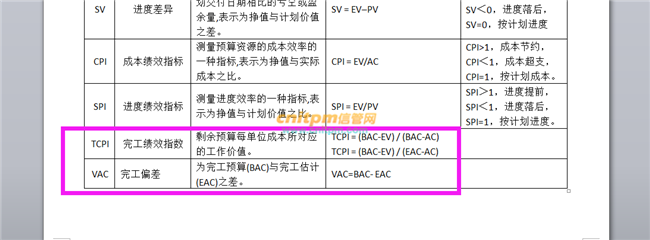 信息系统项目管理师VAC=BAC-EAC是个什么公式