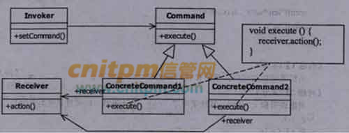 某灯具厂商欲生产一个灯具遥控器,该遥控器具有7个可编程的插槽,每个插槽都有开关灯具的开关,现采用Command(命令)模式实现该遥控器的软件部分。Command模式的类图如图1-1所示。
