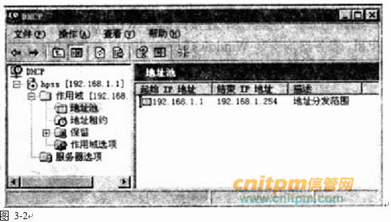 该单位路由器Router的E0口设置为192.168.1.9/24,若在DHCP服务器上配置、启动、激活DHCP服务后,查看DHCP地址池的结果如图3-2所示。