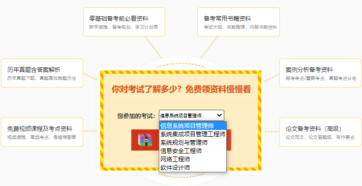 很多考生在备考软考考试前喜欢到处去收集一堆资料,其实就备考前期而言,建议有一本官方教材、一份考试大纲、一套历年真题就可以了,当然如果大家还想找一些其他资料也不是不可以,但网上的资料杂七杂八,质量也是参差不齐,有些还是骗钱的,为此JRS直播也整理了一些资料供大家免费下载,包括软考信息系统项目管理师、系统集成项目管理工程师、信息安全工程师、系统规划与管理师、网络工程师、软件设计师。