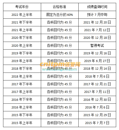 软考考试通过率一般都不高,并且固定合格标准为每个科目总分的60%,也就是45分及格。而且软考成绩是不予保留的,必须在一次考试中各科目同时及格才算合格,也就是说,如果你这次考试只及格了一科,明年再考的时候,这门科目还是要继续考。对成绩有异议可以复查,但只查主观题,客观题不接受复查。