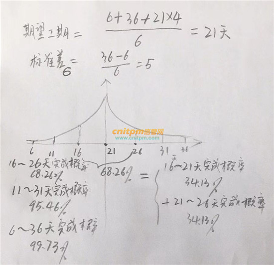 思路:三点估算,然后看看TE在哪个值,然后去看16-26在那个范围(正态分布图)