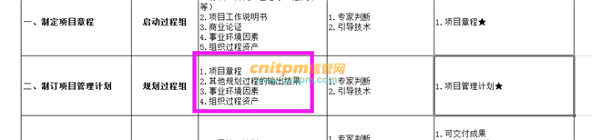 制定项目管理计划是输入是:项目章程,其他过程的子计划,事业环境因素,组织过程资产