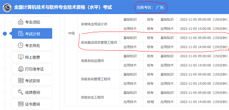 最近不少考生从中国计算机职业资格网报名系统“广东考区”的考试计划中看到,在报名阶段还是在11月5日举行的2022年下半年系统集成项目管理工程师考试突然变成了11月6日举行,这让不少考生表示惊讶,难道广东在2022年上半年5月29日单独举行的系统集成项目管理工程师考试在下半年又要“梅开二度”,又将要单独命题?