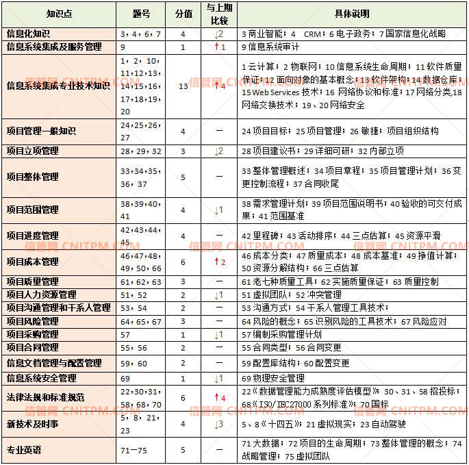 1、上午综合知识试题较上半年相比简单一些,本次考试的新技术及时事分值每次都有所降低,系统集成专业技术知识和法律法规方面的分值有所提高,其他项目管理部分知识分值与以往差不多。