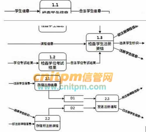 现采用结构化方法对课程注册系统进行分析和设计,获得如图1—1所示的0层数据流图和图1-2所示的1屋数据流图。