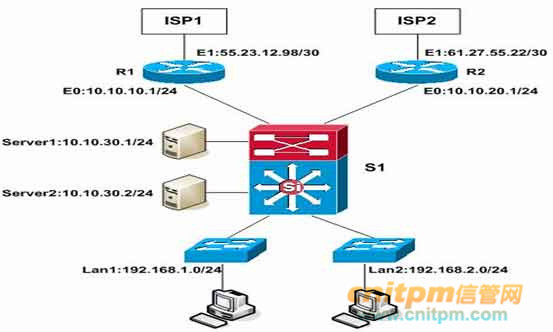 2.单位网内用户访问其他IP地址时,出口经ISP1;