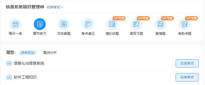 章节练习:根据信息系统项目管理师教程逐章分类,考生可根据个人需求选择相应章节进行练习。