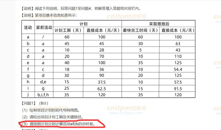 信息系统项目管理师试题解析:某项目基本信息如表所示:【问题1】(1)绘制项目计划的双代号网络图