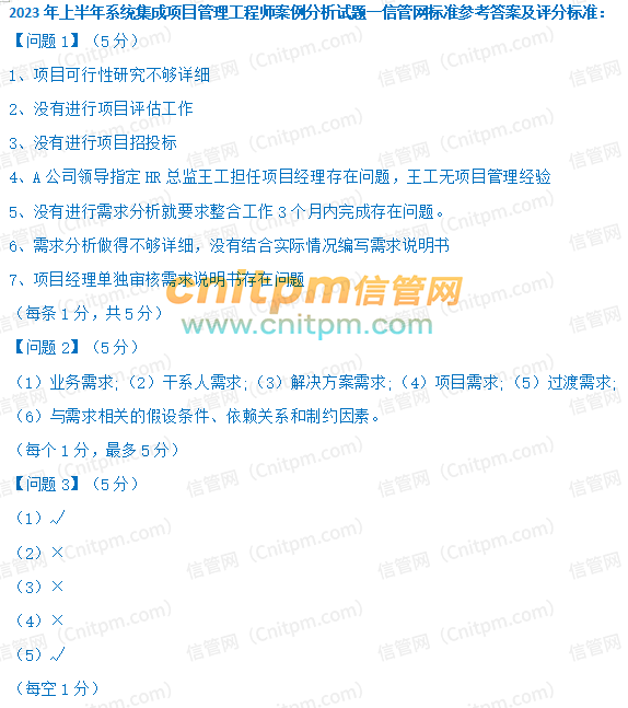 2023年上半年系统集成项目管理工程师案例分析真题答案解析(试题一)