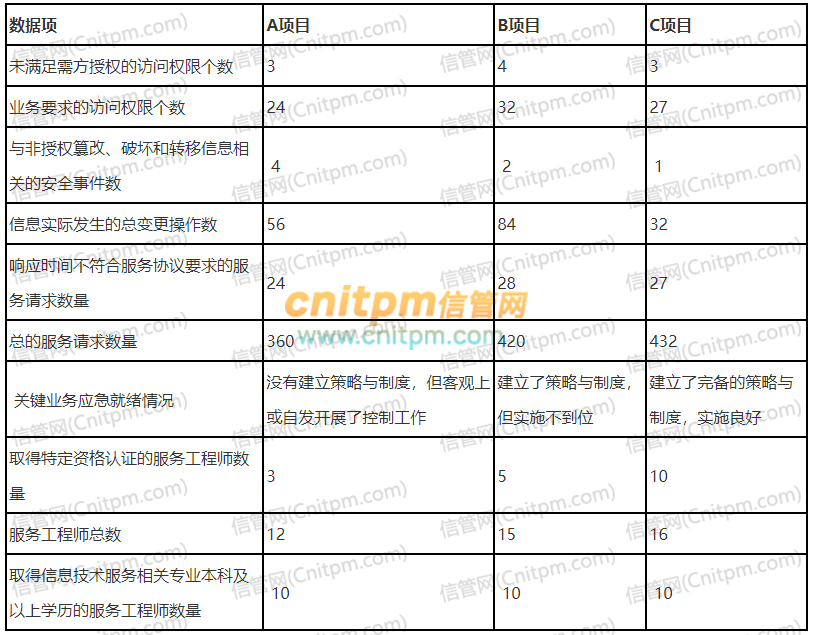 X公司主营运维服务业务,上一年度客户满意度明显下降,为寻找公司服务实施过程中存在的问题和缺陷,并提供服务改进活动有效实施的目标和方向,保证组织的服务质量稳定可控,公司决定让小王负责运维服务质量管理工作。小王首先对公司最重要的三个运维项目进行质量评价,收集的部分数据如下:
