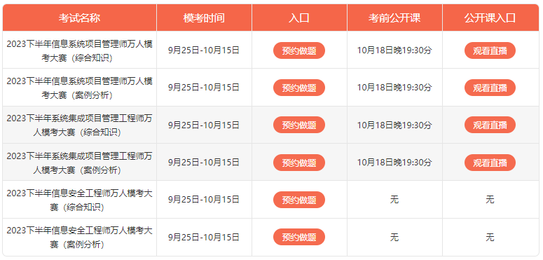 本次万人模考大赛分为两个阶段,在体验考试环境的模拟试题之后,还有对2023年下半年考前冲刺和2024年上半年备考进行指导的直播公开课。
