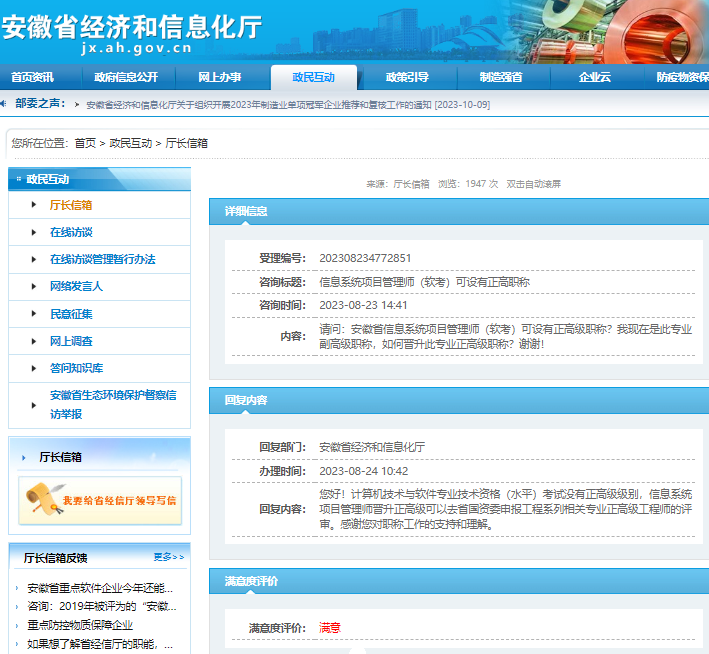 安徽省经济和信息化厅回复:您好!计算机技术与软件专业技术资格(水平)考试没有正高级级别,信息系统项目管理师晋升正高级可以去省国资委申报工程系列相关专业正高级工程师的评审。感谢您对职称工作的支持和理解。