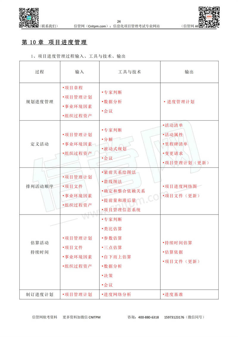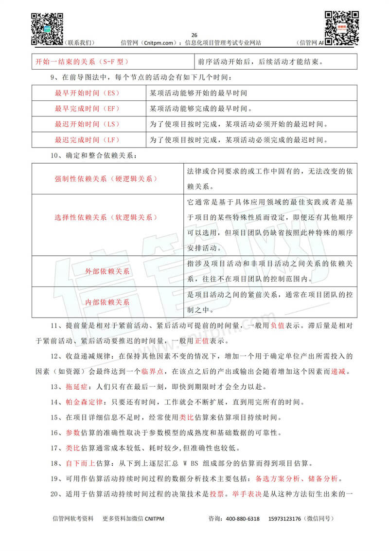 以下为JRS直播整理的信息系统项目管理师教程第四版考点默写本(普通版)《第10章-项目进度管理》的参考答案,供广大考生查看: