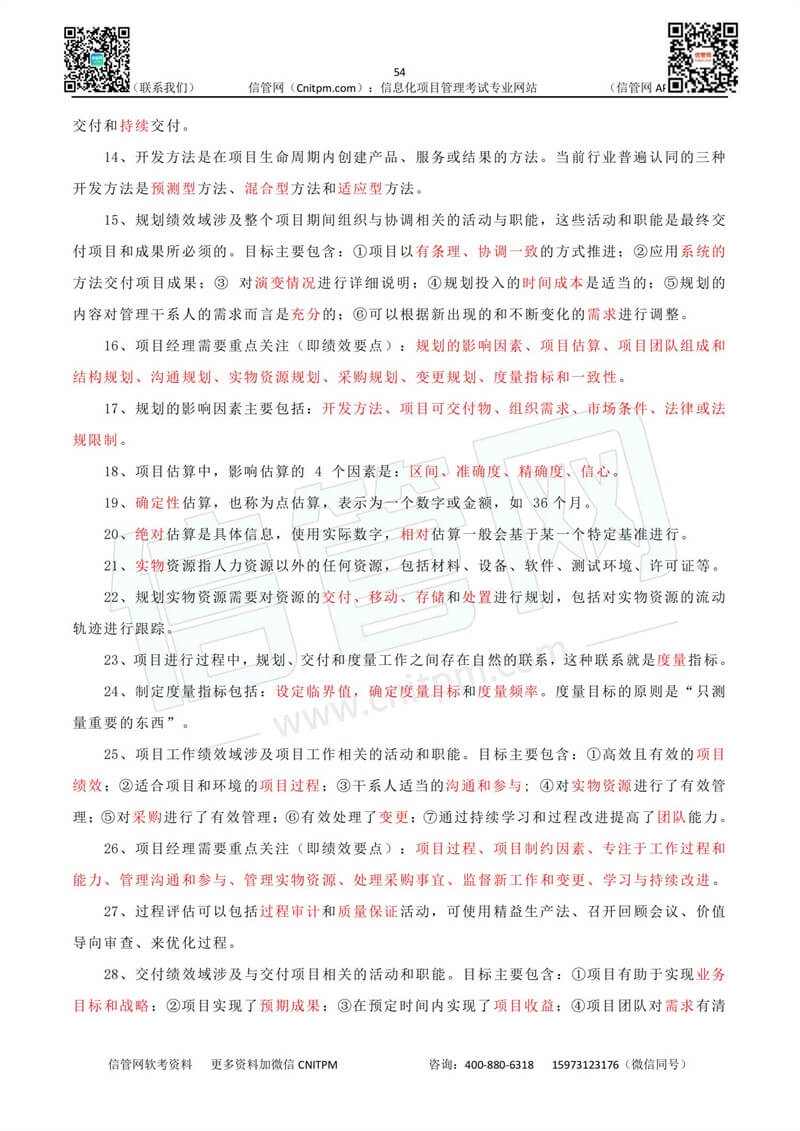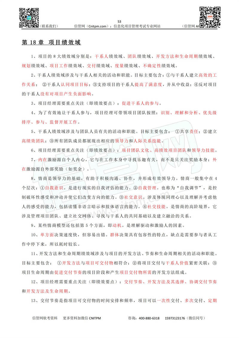 以下为JRS直播整理的信息系统项目管理师教程第四版考点默写本(普通版)《第18章-项目绩效域》的参考答案,供广大考生查看:
