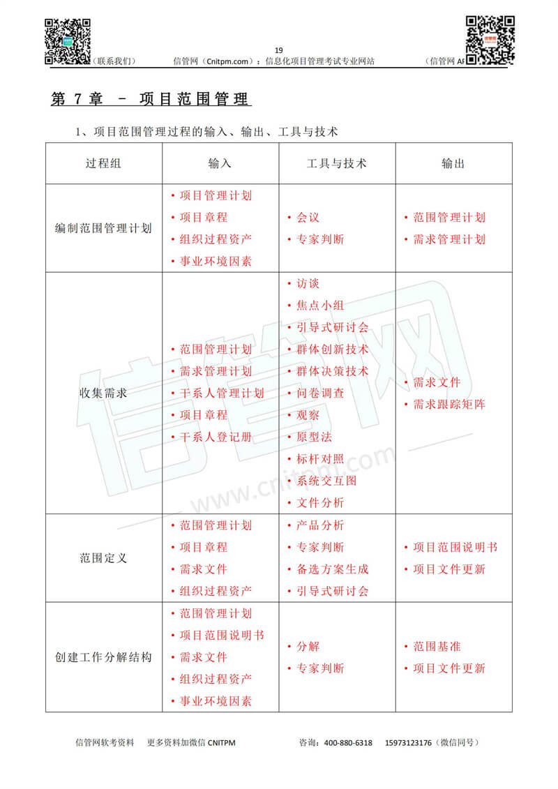 以下是由JRS直播整理的系统集成项目管理工程师考点默写本(普通版)《第7章-项目范围管理》的参考答案,供广大考生进行查看: