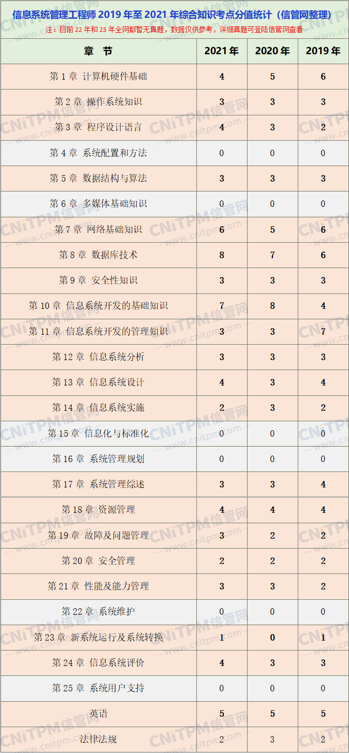 信息系统管理工程师2019-2021年上午综合知识真题考点统计,大家可以有针对性的复习