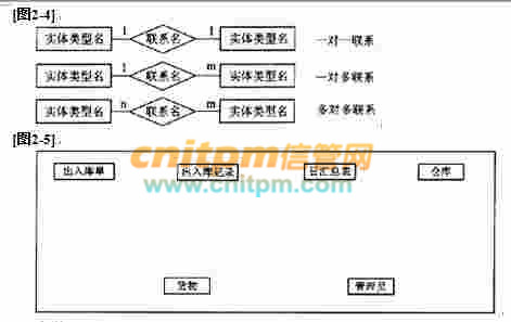 卖体联系图的表示方法如图2-4所示,其中方框表示实体,菱形表示联系,联系的类型在实体与联系的边上标出。图2-5为与该系统对应的实体联系图。