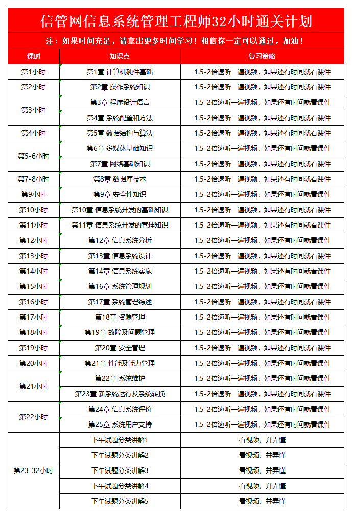 给自己定一个目标,32小时通过2024年上半年信息系统管理工程师!