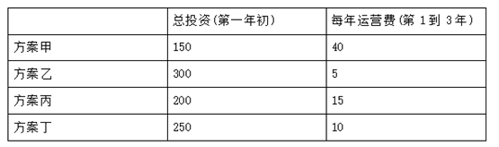 67、某项目有四个方案均能满足要求。其费用数据如下表所示。在基准折现率为10%情况下,根据费用现值法,最优方案是()