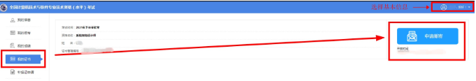 2.点击网站右上角个人中心,进入“基本信息”界面,点击“我的证书”,选择“申请邮寄”。