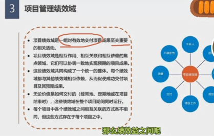 正是在这多学科知识的共同的作用下,使你的知识水平达到了可以去进行专业呃训练的这么一个水平啊,所以绩效率也是一样。项目管理最终要达到这个目的目的呢或者达到了这个目标呢,是在多个绩效与共同作用下啊共同作用下,正如人体啊人是由多个系统共同作用下,我们才能生存。呼吸系统、循环系统、消化系统是吧?各种各样的系统。然后呢无论价值是如何交付的,这些绩效域呢在整个项目期间同时运行。每个项目各个绩效域之间的关联方式各不相同,那么存在于每个项目之中。所以我们在绩效率这部分,大家重点掌握几个方面啊,重点掌握几个方面。