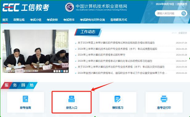 ☛第二步:在当地规定的报名时间内进入软考办官网,即中国计算机技术职业资格网(https://www.ruankao.org.cn/),然后点击“报名入口”。