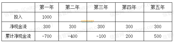 某公司投资一个使用寿命为5年的项目,第一年年初投入1000万元,从第1年到第5年每年年末都有净现金流量300万元。则项目的静态投资回收期为()年。信息系统项目管理师每日练习题答案解析(2024/10/19)