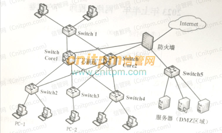 (4)26(1)干线子系统是数据机房中的switch core1和switch core2到各个楼层间的switch1-switch4交换机之间的区间