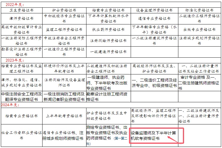 备注:下列各项考试合格证书正在发放中