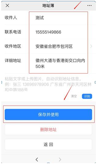 (4)填写收件地址