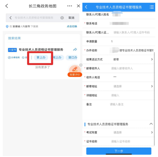 1.网申邮寄。考生下载皖事通App,进入“长三角政务服务地图”,搜索事项 “专业技术人员资格证书管理服务”,选择“邮寄”结果送达方式,提供准确的寄送地址及联系电话,填写考试年度和证书名称。系统审核后通过中国邮政速递免费寄送证书,证书仅支持本人当面签收。操作步骤请查看附件:皖事通App网申邮寄证书操作指南。