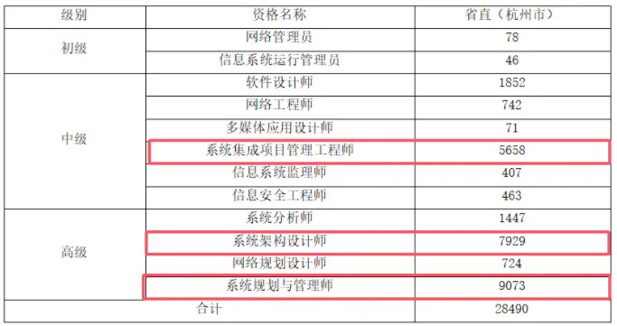| 中级 | 系统集成项目管理工程师 | 5658 | 786 | 13.89% |