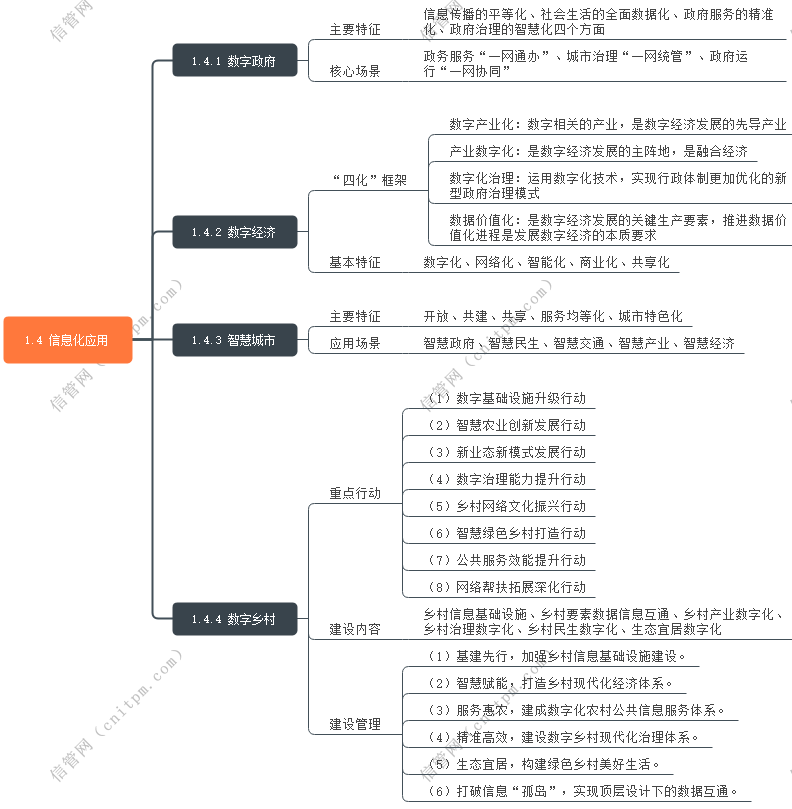 2025年信息系统监理师章节考点思维导图:1.4 信息化应用