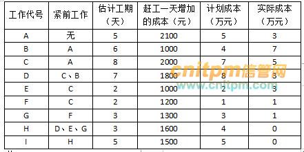 2压关键路径上的活动i,i活动赶工1天的成本最低。