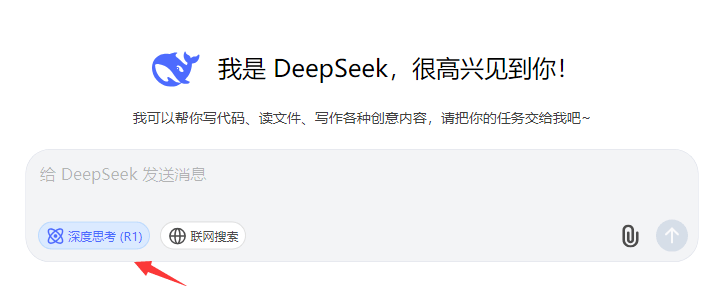 登录后即可使用DeepSeek,默认是没有选中深度思考的,如果想要给出深度思考的内容,可以点击深度思考。
