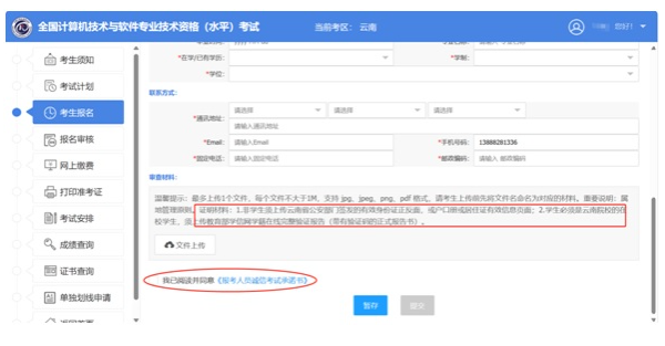 3、按要求提交属地证明材料,阅读承诺书并勾选已读,方可提交报名信息,等待审核: