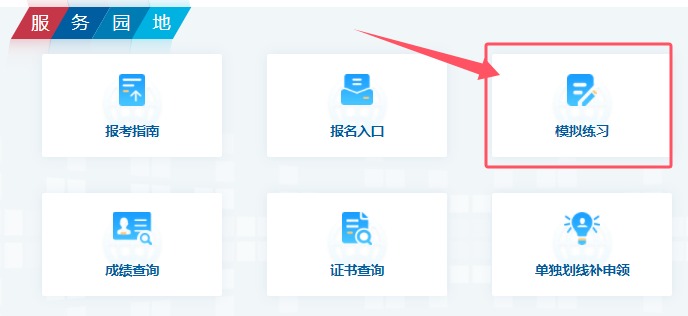 模拟系统入口:登录中国计算机技术职业资格网→在服务园地点击 “模拟练习”→进入机考模拟系统。