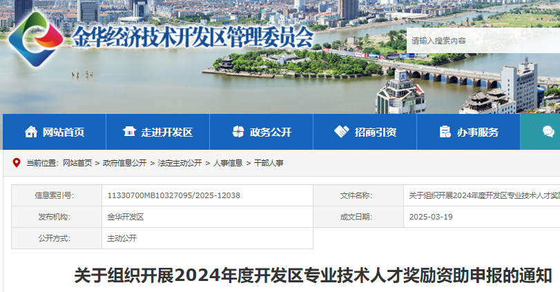 根据《印发〈关于深化实施“双龙计划”加快打造浙江中西部人才高地的若干意见〉的通知》(金人才领〔2024〕3号)关于专业技术人才奖励资助的相关规定,现就专业技术人才奖励资助申报通知如下: